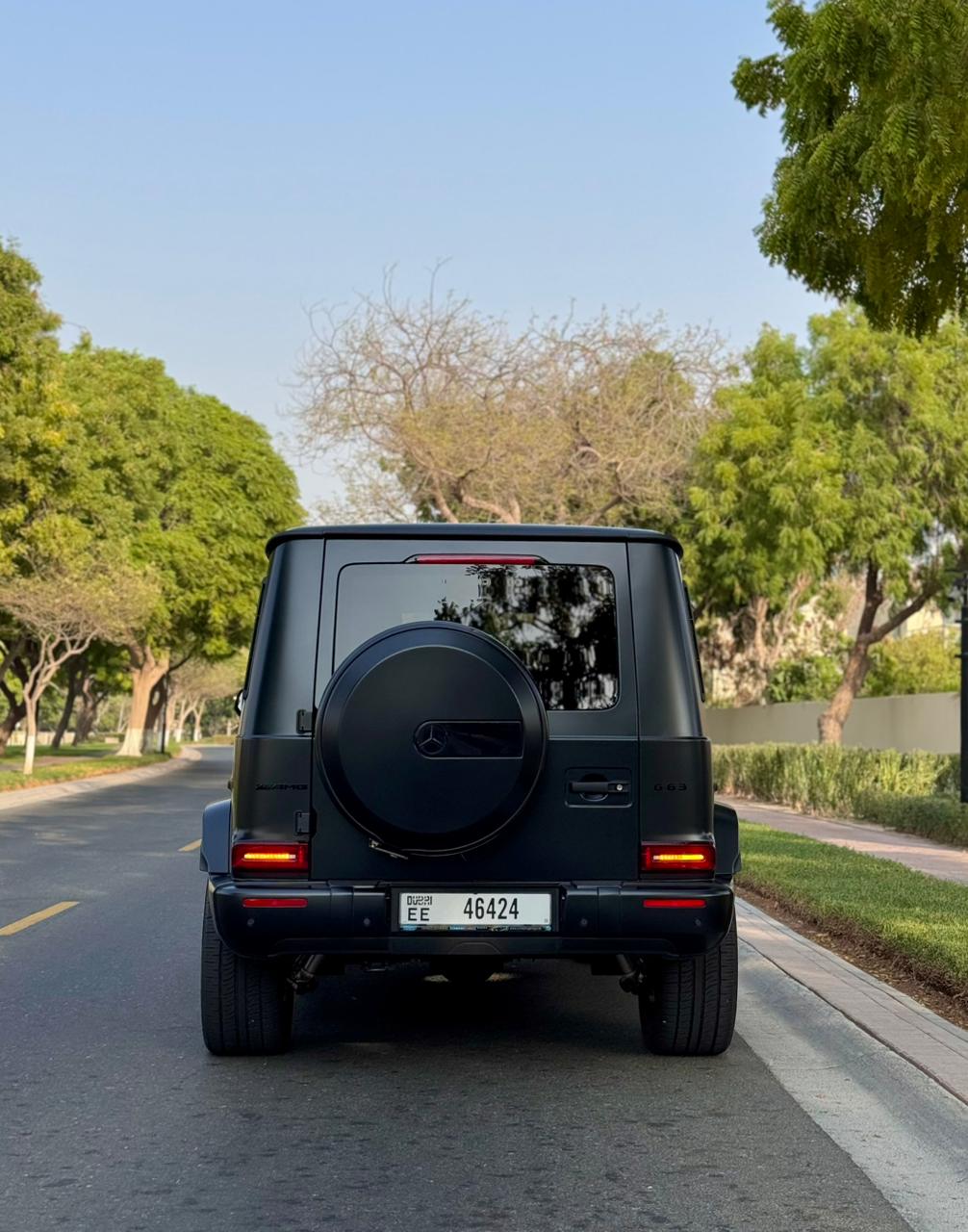 The 2024 Mercedes-Benz AMG G63 packs a 4.0L V8 biturbo engine with 577 hp and 627 lb-ft torque, hitting 0–100 km/h in just 4.3 seconds—delivering thrilling power on Dubai roads.